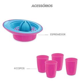 Kit Liquidificador com Manivela, Espremedor e Copos. Um item essencial para quem deseja ter uma cozinha de brinquedo completa para sua filha, esse kit de liquidificador conta com diversas características como um de verdade. Com manivela para misturar e copo transparente, além de diversos acessórios como espremedor e 04 copos para servir seus convidados, proporcionando uma ótima experiência e imersão na hora da brincadeira.É um brinquedo seguro, feito com materiais seguros e duráveis, vai garantir um excelente tempo de vida útil e segurança para a criança na hora da brincadeira. -Não recomendado para menores de 03 anos por conter peças pequenas que podem ser engolidas ou aspiradas;