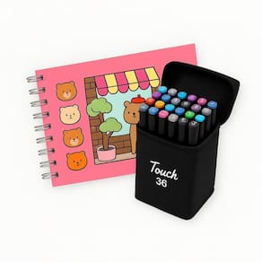 - 36 Canetinhas com Ponta Dupla: Um conjunto completo de canetinhas, cada uma com duas pontas para diferentes tipos de detalhamento, oferecendo uma variedade de cores vibrantes para dar vida aos seus desenhos.