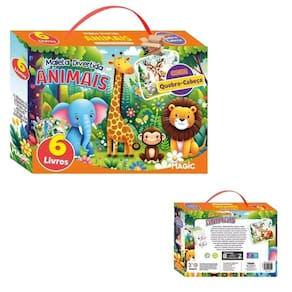 Kit Livro Infantil Maleta Divertida 6 Livros + Quebra Cabeça