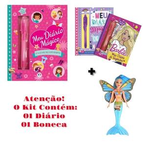Desperte a imaginação e a criatividade da sua filha com o kit meu diário mágico o livro com caneta especial permite que a criança escreva mensagens secretas que só podem ser lidas com a luz mágica da caneta. A boneca completa a diversão, incentivando a criação de histórias e brincadeiras. Este kit é composto por um livro com páginas coloridas e ilustradas, uma caneta especial com tinta invisível e luz mágica, e uma boneca com design encantador. Um presente completo para estimular a imaginação e a criatividade das meninas.