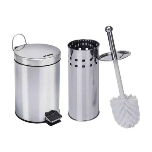 Kit Lixeira De Banheiro 5 Litros Com Escova Sanitária E Suporte Inox Para quem busca elegância, praticidade e higiene no banheiro. Composto por uma lixeira em aço inox 410 com capacidade para 5 litros e uma escova sanitária com suporte, o conjunto alia design moderno, durabilidade e funcionalidade em cada detalhe. A lixeira possui pedal resistente que permite a abertura da tampa sem o uso das mãos, promovendo maior higiene no dia a dia. O sistema de fechamento suave (soft close) garante que a tampa se feche de forma silenciosa e sem impacto, prolongando a vida útil do produto e evitando ruídos indesejados. Com cesto interno removível, a limpeza e o descarte de resíduos se tornam mais práticos. Seu formato compacto (20,3??27,8?cm) a torna perfeita para banheiros, lavabos ou ambientes com espaço reduzido. Acompanha também uma escova sanitária com cabo em aço inox e suporte combinado com detalhes em plástico, oferecendo cerdas resistentes e eficazes na limpeza. O design funcional da escova (medindo aproximadamente 9,5??34,5?cm) complementa o visual do ambiente com discrição e sofisticação. Perfeito para quem deseja um ambiente limpo, organizado e com acabamento refinado, é sinônimo de praticidade com estilo, sendo ideal tanto para uso residencial quanto comercial. Especificações:Lixeira: 27,8cm de altura x 20,3cm de diâmetro Escova Sanitária: 35,5cm de altura x 7,5cm de diâmetroSuporte: 38,5cm de altura x 9,5cm de diâmetro Peso aprox.: 1,15kg Contém:01 Lixeira de Banheiro 5 Litros com Escova Sanitária e Suporte - Inox