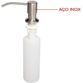 - 1 Lixeira de embutir com tampo em aço inox e balde plástico - 1 dosador de sabão de embutir de aço inox com reservatório de plástico.