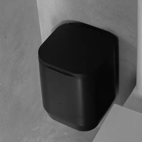 Lixeira de piso e parede Ou Linha Aura - Preto Detalhes do produto Possibilidade de uso no chão ou fixada na parede Fixação com adesivo extremamente resistente Sem necessidade de furos na parede Tecnologia Ultra Click de fixação fácil e segura Suporta até 4kg Sistema de fechamento suave na tampa.
