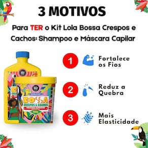 Descubra o poder do Kit Lola Bossa Crespos e Cachos, a solução completa da LOLA para realçar a beleza natural dos seus fios. Especialmente formulado para cabelos crespos e cacheados, este kit oferece uma rotina de cuidados que nutre, hidrata e define, transformando seus cachos com vitalidade e brilho. Composto por um Shampoo de 500ml e uma Máscara Capilar de 450g, ele é o segredo para cachos saudáveis, macios e perfeitamente modelados.