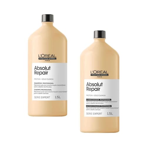Este kit contém 01 shampoo l'oréal absolut repair gold quinoa + protein 1500ml 01 condicionador l'oréal absolut repair gold quinoa + protein 1500ml