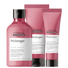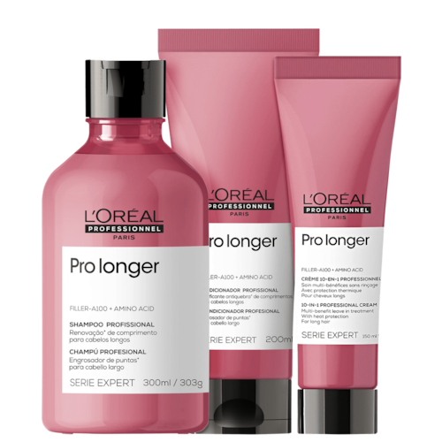 Kit L'Oréal Professionnel Pro Longer Preenchimento de Pontas Cabelos Finos reduz as pontas duplas, promove sedosidade, maciez e minimiza em até 56% os danos na superfície. Também garante proteção térmica e deixa o cabelo fortalecido e renovado.