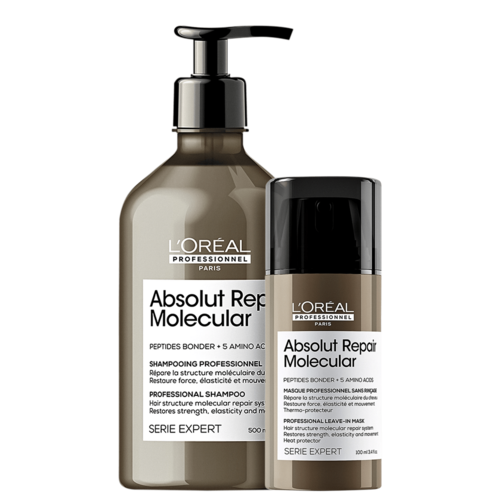 O Kit L'Oréal Professionnel Absolut Repair Molecular Super Duo traz a inovação da L'Oréal Advanced Research, desenvolvida para recuperar o cabelo de maneira nunca vista antes. Essa tecnologia permite a decomposição dos peptídeos, e então direcionados e injetados diretamente nas fibras capilares, resultando em uma reconstrução completa da estrutura molecular do cabelo. Esse processo revolucionário visa a revitalização profunda e intensa, tornando os fios mais fortes, saudáveis e resistentes.