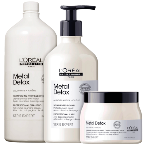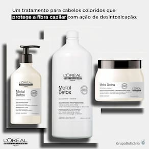 O Kit L'Oréal Professionnel Metal Detox Trio conta com fórmulas desenvolvidas para neutralizar a cor e desintoxicar os fios. Protege a fibra capilar das partículas de metal após a coloração, além de prolongar a vivacidade do tom e diminuindo em 87% o risco de queda.