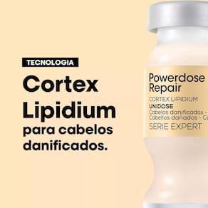 Kit LOréal Professionnel Powerdose Repair Cortex Lipidium 3x10ml Ampola Mágica Power Repair Lipidium 10ml: Seu Cabelo Novo em 5 Minutos Seu cabelo está pedindo socorro A Ampola Power Repair Lipidium é a solução que você procurava Com sua fórmula poderosa, ela reconstrói os fios danificados desde o interior, devolvendo o brilho, a maciez e a proteção que seu cabelo merece. Benefícios: