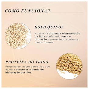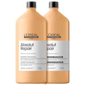 O Kit L'Oréal Professionnel Serie Expert Absolut Repair Gold Quinoa + Protein Salon Duo traz ativos que ajudam restaurar a superfície dos fios, revelando um cabelo com a aparência mais saudável. Seu visual ganha muito mais brilho e um toque macio incrível.