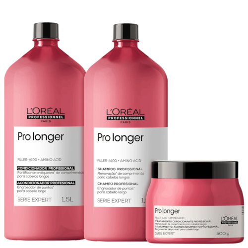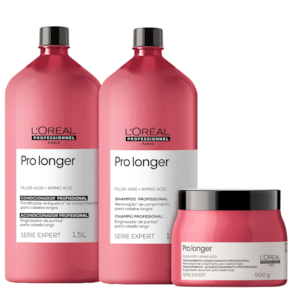 O Kit L'Oréal Professionnel Serie Expert Pro Longer Triplo é ideal para minimizar as pontas duplas e ressaltar o brilho. Sua fórmula penetra e preenche a fibra capilar, reforçando e devolvendo a densidade aos fios.