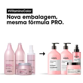 O Kit L’Oréal Professionnel Serie Expert Vitamino Color oferece um cuidado especial de tratamento e proteção da cor. Protege até as cores mais sensíveis, evitando o desbotamento, promove hidratação e luminosidade e deixa os fios nutridos por mais tempo.