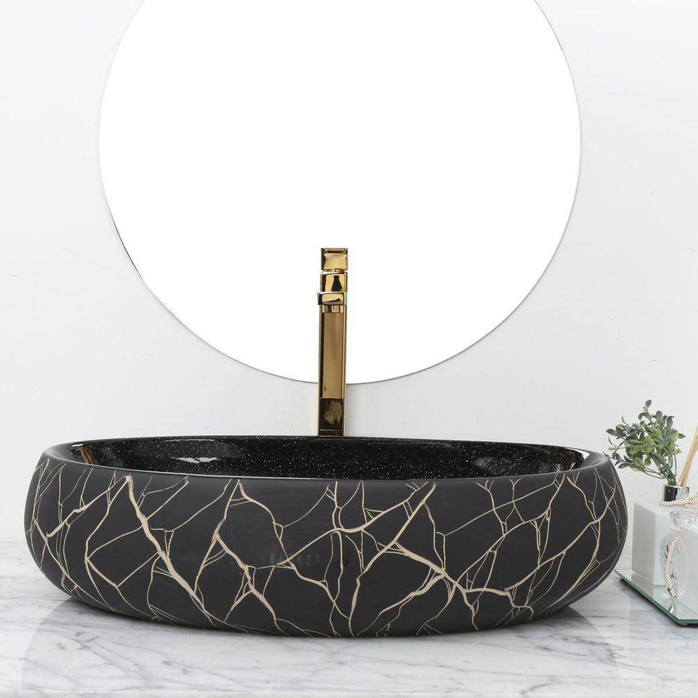 Kit Cuba Pia Louça Cerâmica Banheiro C/Torn E Vál Dourad 24