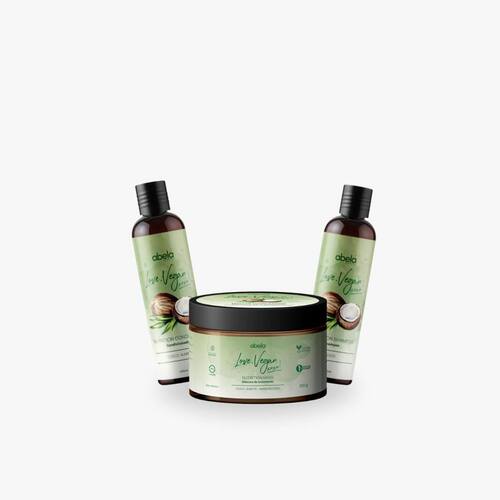 Kit Love Vegan Coco Abela: Shampoo, Condicionador e Máscara Kit de Tratamento Love, Vegan Coco 300ml Abela - Shampoo, Condicionador e Máscara Nutritiva Transforme sua rotina de cuidados capilares com o Kit de Tratamento Love, Vegan Coco da Abela Um trio perfeito para cabelos mais saudáveis, nutridos e brilhantes. Composto por shampoo, condicionador  300ml cada  e a máscara de tratamento nutritiva  300ml , este kit foi desenvolvido especialmente para quem busca resultados incríveis com ingredientes naturais e cruelty-free. Descrição do Produto: Formulado com o poder do óleo de coco, conhecido por suas propriedades hidratantes e nutritivas, este kit é ideal para todos os tipos de cabelo, especialmente os ressecados e danificados. Sua composição 100% vegana respeita o meio ambiente e promove uma experiência de cuidado gentil e eficaz. Shampoo: Limpeza suave que remove impurezas sem ressecar os fios, preparando-os para absorver os nutrientes do tratamento. Condicionador: Desembaraça e hidrata profundamente, deixando os fios macios, sedosos e fáceis de pentear. Máscara de Tratamento: Rica em ativos nutritivos, promove hidratação intensa, reparando os danos e devolvendo a vitalidade dos cabelos. Principais Benefícios: Hidratação Profunda: O óleo de coco penetra na fibra capilar, restaurando a umidade natural e reduzindo o frizz. Fórmula Vegana: Sem ingredientes de origem animal e livre de crueldade. Livre de Parabenos e Sulfatos: Proporciona um cuidado mais delicado e saudável para os fios e o couro cabeludo. Reparação e Nutrição: Ideal para cabelos danificados, restaura a força e a elasticidade dos fios. Versátil: Adequado para todos os tipos de cabelo, podendo ser diariamente ou como tratamento semanal intensivo. Modo de Uso: Shampoo: Aplique nos cabelos molhados, massageando suavemente até formar espuma. Enxágue bem e repita, se necessário. Condicionador: Após o shampoo, aplique no comprimento e pontas. Deixe agir por 2-3 minutos e enxágue. Máscara Nutritiva: Use uma ou duas vezes por semana. Aplique nos cabelos limpos e úmidos, do comprimento às pontas. Deixe agir por 5-10 minutos e enxágue completamente. Por que Escolher o Kit Love, Vegan Coco Abela Fórmula leve e de fácil enxágue, que não deixa os cabelos pesados. Aroma delicioso de coco que proporciona uma sensação de frescor e bem-estar. Embalagens práticas e sustentáveis. Dica Extra: Combine o uso da máscara nutritiva com uma touca térmica para potencializar os resultados e conquistar cabelos ainda mais macios e brilhantes Com o Kit Love, Vegan Coco, seus cabelos terão o cuidado que merecem, com resultados visíveis desde a primeira aplicação. Escolha a saúde dos seus fios e o respeito ao meio ambiente. Adquira agora e transforme sua rotina capilar
