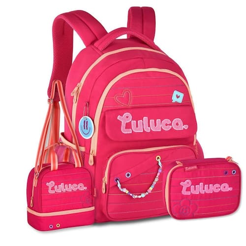 Kit Mochila de Costas Luluca LU24610 + Lancheira Térmica LU24613 + Estojo Box LU24612 - Estilo e praticidade para o dia a dia Se você busca estilo, praticidade e economia em um único kit, o Kit Escolar Completo Luluca é a escolha perfeita para começar o ano letivo com tudo Ideal para meninas modernas e organizadas, esse kit premium combina design encantador, funcionalidade e qualidade superior em cada detalhe. Mochila LU24610: Com um compartimento principal super espaçoso, ela é ideal para guardar cadernos, livros e ainda traz uma área acolchoada especial para notebook e tablet, garantindo segurança e proteção. Além disso, possui um compartimento extra grande com zíper e divisórias internas para manter seus itens sempre organizados. Na parte frontal, você encontra dois bolsos práticos, perfeitos para itens menores, e um bolso antifurto traseiro, ideal para guardar objetos de maior valor com total segurança. Já os bolsos laterais telados são ideais para garrafinhas ou pequenos acessórios. As alças ajustáveis e acolchoadas garantem conforto ao carregar a mochila, enquanto a alça superior reforçada e a alça carona permitem praticidade em viagens ou para acoplar a malas. Os detalhes são o verdadeiro charme dessa mochila Chaveiros de miçangas e rostinho feliz, patches atoalhados de flor e coração, ilhós coloridos e etiquetas de borracha completam o visual cheio de personalidade e delicadeza. Confeccionada em nylon resistente, com acabamento matelassê, ela oferece qualidade premium e durabilidade. - Dimensões aproximadas: 44x33x15 cm. A Lancheira Térmica LU24613 mantém os lanches fresquinhos e organizados com muito estilo. Possui dois compartimentos separados, ambos com fechamento por zíper e com revestimento térmico, Possui alça de mão, alça carona e alça de ombro ajustável que garantem praticidade no transporte e combinam perfeitamente com a mochila. Dimensões aproximadas: 21x21x13cm Já o Estojo Box LU24612 é estruturado e acomoda até 36 lápis ou canetas com seus elásticos internos, além de contar com um estojo extra com zíper para separar os itens. As imagens são ilustrativas; lápis e canetas não acompanham o produto. Dimensões aproximadas: 22x16x06 cm. Seja para a escola ou momentos de lazer, o Kit Luluca é perfeito para acompanhar o dia a dia com estilo e organização Marca: Não Informado