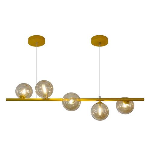 Kit Lustre 90cm Dourado 5 Bolas Transparente + Lampada Kit Lustre 90cm Dourado 5 Bolas Transparente + Lampada 6 meses de Itens Inclusos: 1- Luminária Pendente Alumínio + Silicone com 5 bolas de vidro + Lampada Decore seu espaço com sofisticação, delicadeza e estética moderna elevam qualquer ambiente, oferecendo versatilidade e charme ,fabricado com alta qualidade este pendente de luz LED é perfeito para uso interno e proporciona um toque elegante, enquanto seus 3 kg de peso evidenciam sua qualidade premium. Cuidadosamente projetado para unir o requinte à praticidade, o Pendente é um destaque na decoração moderna, que vai além de sua funcionalidade ao se tornar um elemento de destaque em sua casa. Especificações: Tipo do Item: Pendente Contém LED: Sim Formato: Retangular Uso Interno/Externo: interno Voltagem: Bivolt Quantidade de lâmpadas necessárias: 5 Tipo de lâmpada necessária: Halopin Soquete de lâmpada necessária: G9 Comprimento: 90cm Diâmetro: 26cm Material: Metal e Vidro Leitoso Cor: Dourado O produto é novo Sim, todos os produtos são novos. Caso o produto não supra minha necessidade posso devolver ou trocar O produto tem Sim, todos os produtos têm . Se ainda houver alguma dúvida estamos a disposição para responder de segunda-feira a sexta-feira das 08:00 às 17:30. Marca: Nj Iluminação