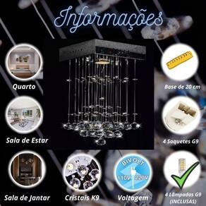 - Tensão: Bivolt (O lustre aceita ambas voltagens- A lâmpada deve ser de acordo com a voltagem correspondente a sua residência )