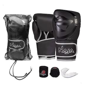 Kit Luva de Boxe Muay Thai - Naja Mod. Black Line Preto/Prata + Bandagem + Bucal Cor: Preto/Prata Tamanho: 12 oz Kit composto por: