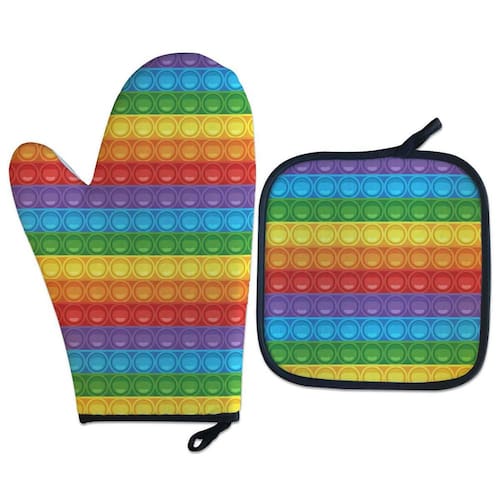 O Kit Luva Térmica Pop It Cozinha Criativa é uma ótima adição para a sua decoração e um ótimo presente para que já entrou na onda do Pop It. O kit acompanha uma luva térmica e um aparador, para te ajudar na hora de pegar suas panelas e formas quentes.