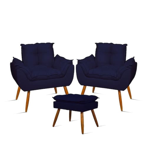 Tipo De Produto: Poltrona | É Reclinável: Não | Desenho Do Tecido: Liso | Acessórios Incluídos: Não | É Sofá-Cama: Não | Estilo: Clássico | Cor Dos Pés: Caramelo | Comnto Do Colchão: Não aplica | Linha: Premium | Formato Do Sofá: Não aplica | Largura Da Cama: Não aplica | Material do estofamento: Suede | Unidades Por Kit: 3 | Densidade Da Espuma Do Assento: D-23 | Mecanismo De Abertura Do Produto: Não aplica | Profundidade Da Cama: Não aplica | Altura Da Cama: Não aplica | Largura Do Colchão: Não aplica | Material De Enchimento Do Encosto: Espuma | Requer Montagem: Não | Altura: 85 CM | Marca: B BALAQUI DECOR | Tipo de Garantia: Garantia do Fabricante | Coleção de Antiguidade: Não | Móvel Dobrável: Não | Tamanho do Pacote: Não aplica | Dimensão (A x L x C): 85 x 80 x 60 | Estofado: Suede | Número de Assentos: 2 | Duração da Garantia: 3 meses | Largura: 80 CM | País de Origem: Brasil | Profundidade: 60 CM | Peso do Item (itemWeight): 30 kg | Material: Madeira | Fabricante: BALAQUI DECOR Cor: Azul Marinho