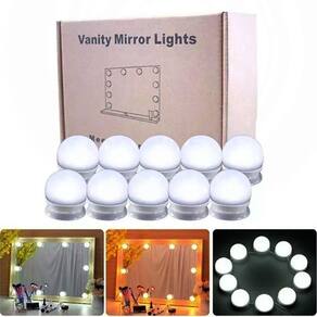 Kit Luz Camarim Maquiagem Com 10 Lampadas Led 3 Cores Com 10 Leds e com fixação na parte de trás você consegue prendê-lo no espelho facilmente. Ou em paredes A lâmpada LED proporciona uma iluminação profissional para maquiagem, é suave e não ofuscante. Instalação feita em segundos,usando ventosas e adesivos que estão incluídos. Faça sua maquiagens e videos com uma iluminação profissional e de baixo custo