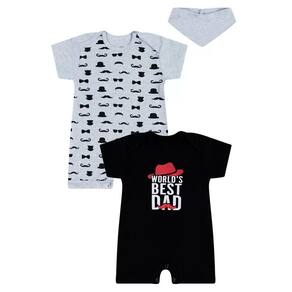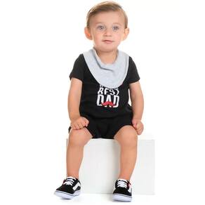 Kit Macacão de bebe Curto Menino com 2 unidades e babador - M - Preto