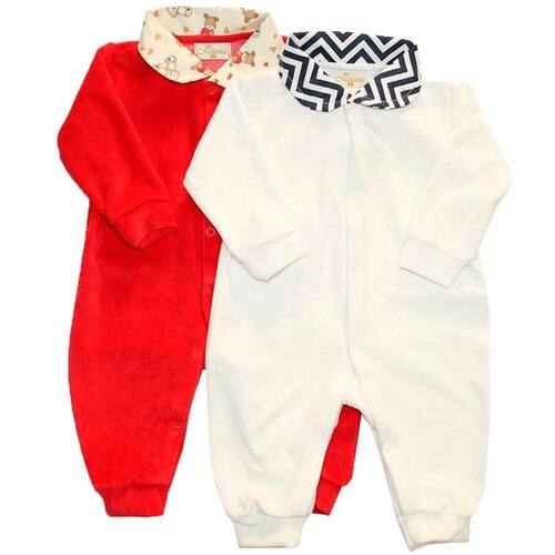 Kit de macacão para bebê menino ou menina Basic 2 peças sendo: 1 macacão branco de plush com detalhe na gola de chevron marinho e 1 macacão vermelho de plush com detalhe na gola de tecido estampado de ursinhos. Roupinha super confortável, possui fechamento com botões de pressão. O macacão é item indispensável para o enxoval do bebê, pois é uma peça versátil e sempre deixa o bebê super fofo. Disponível nos tamanhos: RN, P, M e G.