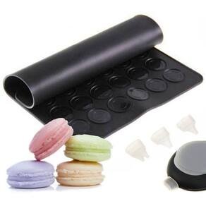 Tapete Macaron com Dosador Agora você pode ter no seu café da manhã ou lanche da tarde o clássico macaron, doce tradicional da culinária francesa Com esta exclusiva assadeira de silicone, é possível fazer doces sem que os mesmos grudem na hora de retirá-Los da forma e sem precisar untar. Cada cavidade do produto possui 4 centímetros de diâmetro e permite fazer até 48 doces. Além do tradicional macaron, é possível assar também o Bem-Casado, tradicional doce brasileiro. Características: - Feito em silicone premium antiaderente; - Perfeito para confeitaria e culinária em geral; - Pode ir ao forno e freezer; - Suporta até 220ºC e -40°C; - Possui 48 cavidades ; - Marca: Macrozao Kit para fazer: Macaron; Coockies; Confeitos; Contém 1 tapete de silicone, 1 aplicador e 3 bicos diferentes na embalagem; Tamanho aproximado: 39x29cm; Cavidade: 3,8cm;