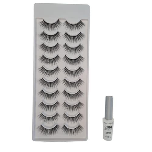 Kit Macrilan Cola Cílios Postiços+Cílios 3D 10 Pares 8D001