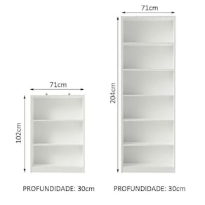- Dimensões aprox. de estante maior: 204 cm de altura x 71 cm largura x 30 cm de profundidade.