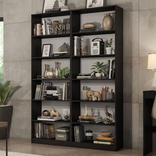 Cada uma das estantes conta com seis nichos super bem distribuídos. São perfeitas para organizar seus livros, revistas e objetos decorativos. Fabricadas em MDP com ótima espessura, possuem suportes de fixação na parte superior, que proporcionam maior segurança.