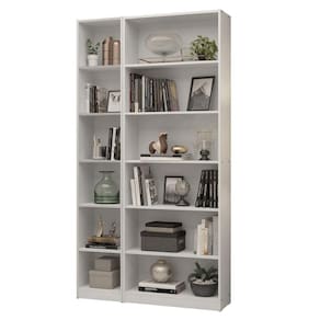 Chegou o conjunto de estantes perfeito para renovar o seu ambiente! Muito práticas e espaçosas, as estantes possuem seis nichos cada, com a na medida certa para organizar os seus livros, revistas e demais objetos de decoração. Ambas têm fabricação em MDP com ótima espessura e contam com suportes de fixação na parte superior, detalhe que reforça a segurança na instalação e no uso diário. O acabamento dos móveis é branco, feito em Pintura Poliéster de alta resistência. Esse método oferece mais proteção ao móvel e é totalmente ecológico.