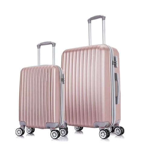 01 mala de bordo pequena 20 polegadas + 1 mala de tamanho g para despachar Material: abs 04 rodas 360 Carrinho embutido com regulagem de altura Alça superior Bolso interno de separação com zíper Fechadura Cinta elástica cruzada com trava