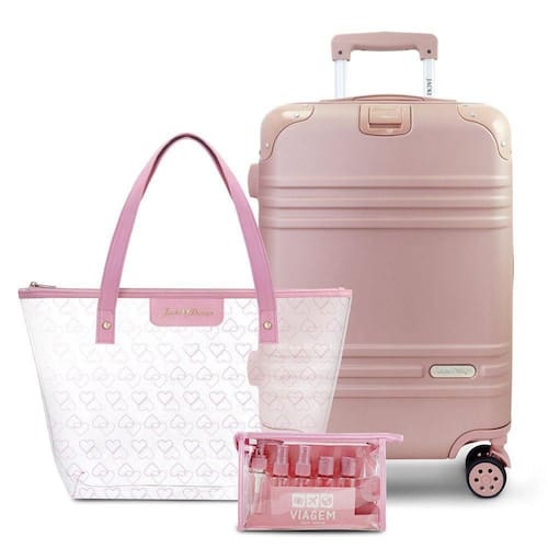 O conjunto completo para quem busca praticidade, organização e estilo em todas as etapas da viagem. Este kit da Jacki Design combina uma mala de bordo resistente, uma bolsa shopper transparente e um kit com 10 frascos de viagem tudo pensado para facilitar seu dia a dia e suas viagens curtas.
