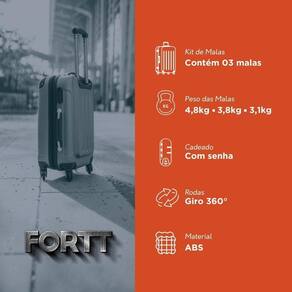 O Kit de Malas de Viagem Adventure da Fortt foi desenvolvido com o que há de mais moderno para suas viagens. O conjunto é produzido em ABS, um material resistente e de fácil limpeza, e conta com 3 tamanhos (P, M e G) para atender a todas as suas necessidades, de viagens curtas a longas.