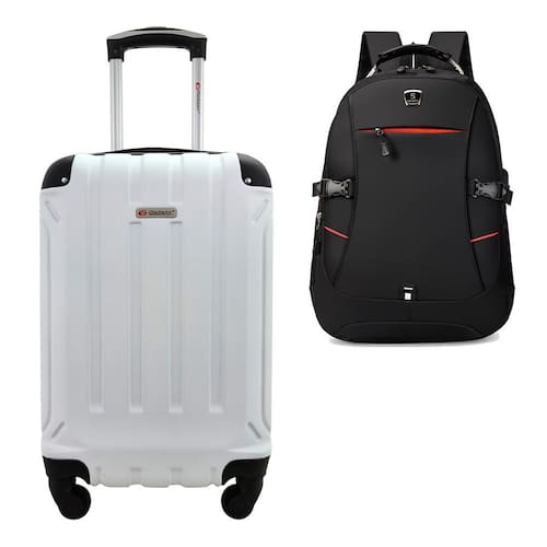 Kit Mala de Viagem Bordo Tamanho PP Rígida em ABS Cadeado Segredo Rodas 360º Gladiador A5MB2 com Mochila Executiva - Cor: Branco