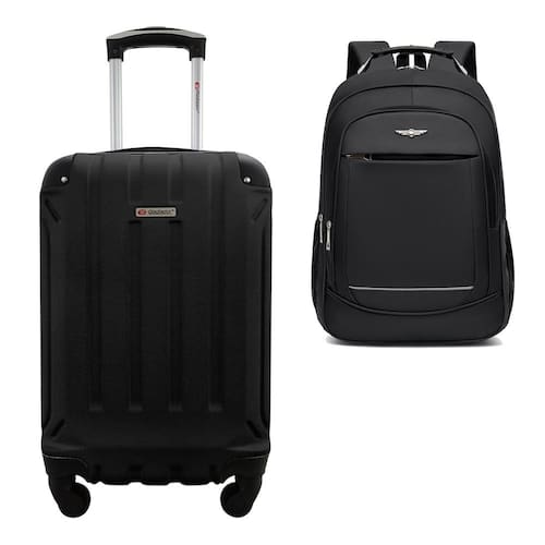 KIT CONTENDO MALA DE BORDO COM MOCHILA EXECUTIVA PARA NOTEBOOK.- Mala de bordo (tamanho PP) rígida em fibra ABS (19"); - Leve sua mala com você na cabine do avião. Medidas conforme as limitações de bagagem de mão.- Mala com cadeado de segredo (senha) embutido; - Forração interna acolchoada;- Alça flexível superior para maior conforto e comodidade; - Bolso interno com zíper;- Rodas giratórias em 360º;- Carrinho retrátil com pintura eletrostática e botão liberador com dois níveis de ajustes.