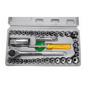 O Jogo de Chaves Soquetes com Catraca Reversível 40 Peças é produzido em Aço com cabo plástico resistente possui ótimo acabamento. É prático, de fácil manuseio, e vem com um exclusivo estojo compacto, projetado especialmente para manter seu jogo de soquetes protegido e organizado, podendo ser facilmente transportado.