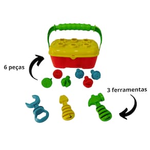 O kit de ferramentas é fabricado com material de polipropileno MUITO RESISTENTE A IMPACTOS e atóxico, significando que não traz risco a saúde da criança.