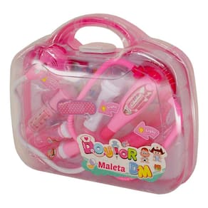 Maleta com acessórios de médico totalizando 14 peças para a criança usar a imaginação e se transformar no médico.