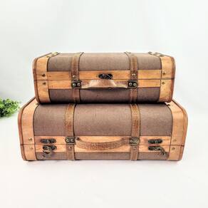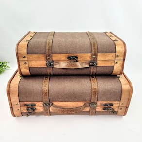 Kit Maletas De Madeira Decorativa Marrom Baú 45/38cm 2pç Kit 2 Maletas Decorativas de Madeira e material sintético Marrom P e G Inigual Decor Dê um toque de charme rústico, organização e elegância vintage ao seu ambiente com o Kit 2 Maletas Decorativas de Madeira e material sintético Marrom da Inigual Decor. Este conjunto versátil, que inclui maletas nos tamanhos Pequeno P e Grande G , é perfeito pra quem busca elementos funcionais que também servem como belos objetos de decoração, criando composições interessantes. Feitas com uma estrutura de madeira e detalhes em material sintético na cor marrom, estas maletas lembram o estilo clássico de antigas caixas de viagem ou tesouros. O design robusto e os acabamentos cuidadosamente selecionados combinam a durabilidade da madeira com a textura sofisticada do material sintético. Elas oferecem um espaço prático pra guardar vários tipos de objetos, como livros, documentos, fotos, controles remotos ou colecionáveis, mantendo tudo organizado e fora de vista. Com a solidez ideal pra serem dispostas em mesas de centro, aparadores, estantes ou até mesmo no chão, compondo cenários aconchegantes, este kit é a escolha perfeita pra quem aprecia a combinação de praticidade, beleza e um estilo atemporal na decoração de casa ou do escritório. Por Que Escolher o Kit de Maletas Decorativas Inigual Decor Design Rústico-Chique: A combinação de madeira e material sintético marrom dá um visual clássico e acolhedor. Funcionalidade Decorativa: Ótimas pra organizar e guardar objetos, ajudando na ordem do ambiente. Material de Qualidade: Feitas com madeira resistente e material sintético durável, garantindo que durem bastante. Versatilidade de Uso: Perfeitas pra salas, escritórios, quartos ou áreas de lazer. Toque Vintage: Adicionam um charme nostálgico e elegante à sua decoração. Especificações do Produto: Maleta P: Altura Aprox.: 13,0 cm / Largura Aprox.: 38,0 cm / Profundidade Aprox.: 24,0 cm / Peso: 885 g Maleta G: Altura Aprox.: 16,5 cm / Largura Aprox.: 45,0 cm / Profundidade Aprox.: 29,5 cm / Peso: 1.180 g Material: Madeira e material sintético Cor: Madeira e Marrom Conteúdo da Embalagem: 2 Maletas Decorativas 1 P, 1 G Importante: Limpe com cuidado usando um pano macio e úmido. Evite produtos abrasivos ou deixar as maletas muito tempo expostas à umidade e luz solar direta pra preservar o material. Observação: As imagens são ilustrativas. Os outros itens decorativos que aparecem nas fotos não vêm com o produto.