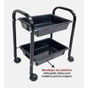 • Praticidade: O carrinho auxiliar oferece duas bandejas e rodinhas, facilitando a organização e o deslocamento dos materiais, otimizando o trabalho diário.