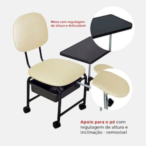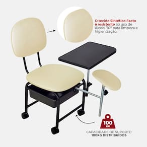 • Conforto Superior: Apoio de mãos articulável e apoio de pés com inclinação ambos removíveis e com regulagem de altura ajustável de acordo com as necessidades do profissional. Espumas de densidade 23, proporcionando conforto ideal para longas sessões de trabalho.