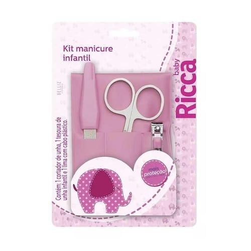 Kit Manicure Infantil Rosa Cortador Tesoura e Lima Ricca