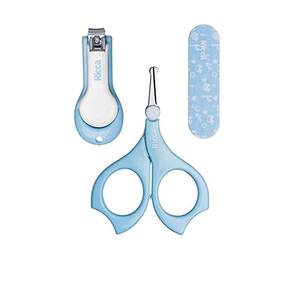 Conjunto completo ideal para o cuidados com as unhas de bebes e crianças pequenas contendo um cortador de unha como lâminas curvas, uma tesoura com ponta arredondada para não ferir a pele e uma lixa suave para eliminar pontas e desníveis na unha da criança ou do bebê.