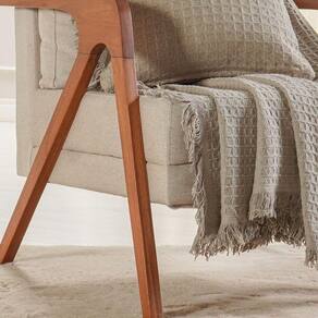Kit Manta e Almofada Decorativa para Sofá Waffle Algodão 120x150cm Cashmere -