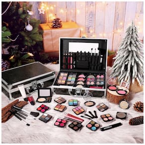Componentes Incluídos 2 lápis olhos, 2 lápis lábios, 1 máscara, 1 pó facial, 4 puffs, 4 pincéis, 6 paletas sombras, 2 blushes, 2 iluminadores, 1 contorno, 2 paletas labiais, 1 pó sobrancelhas, 1 sombra cremosa, 1 corretivo cremoso, 2 gels labial, estojo alumínio com espelho