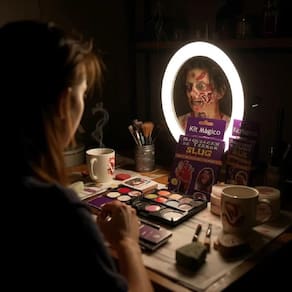 Kit slug + latex liquido ideal para criar efeitos de feridas, cortes, queimaduras ou hematomas. Pode ser em festas, peças teatrais, maquiagem artística e também para cobertura de tatuagens e ilusionismo. Rende de 10 a 15 feridas pequenas. Fácil de aplicar e remover. O kit de maquiagem de terror slug contém: Massa mágica slug 50gr; Sangue preto artificial para queimadura 10ml; Sangue vermelho artificial para feridas 10ml; Espátula para aplicação da maquiagem; Instruções de uso. Produto não comestível: A massa, o sangue e a queimadura são 90% naturais, a base de talco, amido de trigo e glicerina. Contém hidratante e filtro solar. Você pode caminhar no sol sem nenhum tipo de preocupação em relação a reação alérgica, pois o produto não contém nenhum tipo de cola ou amônia. Aconselhamos usar em crianças acima de 07 anos de idade e com o auxílio de um adulto para evitar ingestão acidental. Seca em aproximadamente 20 minutos dependendo da espessura da maquiagem. Permanece por 4 a 5 horas na pele podendo variar de acordo com o clima, temperatura e ambiente. Remover com água e sabão. Látex bi centrifugado pré vulcanizado Utilizado geralmente no auxílio para impermeabilizar a maquiagem/massa, proporcionando cenas externas na chuva, mergulho, etc... Também para prolongar a duração da mesma. Aconselha-se que este produto seja utilizado por , pois requer muitos cuidados . O produto possui cheiro um pouco forte em seu estado líquido. Quando seca também permanece um cheiro de borracha. Obs: cuidado ao fazer uso do látex perto de tecidos e ou roupas, pois ele danifica e não sai mais. Recomenda-se fazer um teste de alergia antes do uso do látex, pois ele possui amonia em sua composição. Kit maquiagem de terror Maquiagem sangue fake Maquiagem queimadura fake Massa de maquiagem Maquiagem hidrossolúvel Maquiagem para cosplay Maquiagem de filme de terror Efeito de ferida Maquiagem assustadora Maquiagem especial para halloween Efeitos especiais de maquiagem Maquiagem de alta realismo Kit maquiagem artística Maquiagem de terror Fantasia com efeitos especiais Maquiagem para festas temáticas Maquiagem para teatro e cinema Produtos para efeitos de ferida Marca: Não Informado Ean: 7793392711595