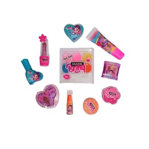 Itens inclusos: Anel Gloss, 4 Presilhas, 1 Pincel, 2 Esmaltes, 2 Batons, Paleta de Sombras, 1 Sombra Individual, Paleta de Gloss, 7 Diferentes Gloss.