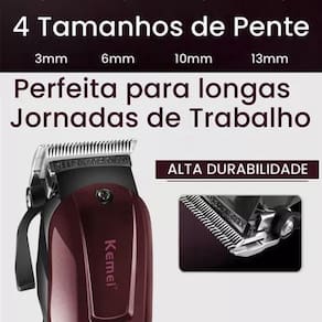 Kit para Barbeiros e Cabeleireiros com Suporte de Acessórios O Kit para Barbeiros e Cabeleireiros foi desenvolvido para quem busca praticidade, qualidade e organização no dia a dia da barbearia ou salão. Composto por ferramentas essenciais, este kit garante cortes impecáveis e um acabamento refinado, elevando a experiência do cliente. Destaques do Kit: Máquina de Corte Kemei KM 2600 Potente e resistente, ideal para cortes de cabelo e barba. Acompanha 4 pentes guia para diferentes comprimentos. Máquina de Acabamento e Detalhes Kemei Km 9163 Leve e precisa, perfeita para contornos, desenhos e finalizações impecáveis. Inclui 3 pentes para ajustes de altura. Kit de Tesouras Profissionais + Navalhete Essencial para cortes detalhados e técnicas avançadas. Inclui 2 tesouras retas e de 1 de desbaste. Suporte para Acessórios de Barbearia Organização total para armazenar máquinas, pentes, tesouras e outros acessórios com fácil acesso e praticidade. O que vem no kit 1 Máquina de Corte Kemei KM 2600, Com 4 Pentes guia: 3mm, 6mm, 10mm e 13mm 1 Máquina de Acabamento e Detalhes Kemei KM 9163, Ideal para contornos e desenhos 3 Pentes guia, nos tamanhos: 1/2, 1 e 1.1/2 Kit de Tesouras e Navalhete em aço inox, com: 2 Tesouras retas para cortes precisos 1 Tesoura de desbaste para reduzir volume 1 Navalhete para finalizações 1 Suporte Organizador para Barbearia: Espaço para armazenar até 3 máquinas 9 compartimentos para pentes, mantendo-os organizados 6 espaços para tesouras, proporcionando fácil acesso 1 compartimento multiuso para outros acessórios Dispenser de lâminas para máxima praticidade. Produto enviado desmontado para facilitar o transporte. Acompanha manual com QR Code para um vídeo tutorial detalhando a montagem. Inclui cola para fixação. Este kit é a escolha ideal para barbeiros e cabeleireiros que buscam eficiência, organização e qualidade no atendimento. Invista nas ferramentas certas e eleve o nível dos seus serviços. Marca: Não Informado Ean: 0040141874009
